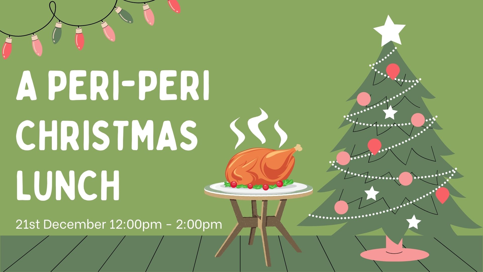 It’s the most wonderful time of the year, and what a better way to celebrate with a Christmas themed lunch! We will be serving a range of delicious meals, including Nando’s famous peri-peri chicken (that’s right this is not a drill!), there may even be a special appearance from the big man himself …..